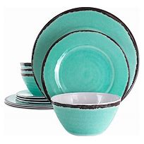 Elama Azul Banquet 12 Piece Lightweight Melamine Dinnerware Set in Turquoise
